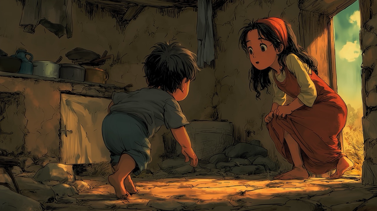 Joseph sat in the corner, chiseling lightly on the edge of a rock with his hammer. His face was more relaxed than before—still watchful, but peaceful. This was a home. A family. An ordinary life, or something close to it.